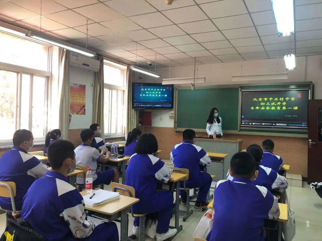 ▲ 在开学第一课上,中关村中学双榆校区的老师们播放了精心制作的视频小片,他们将感恩教育、生命教育、励志教育和惜时教育融在其中。