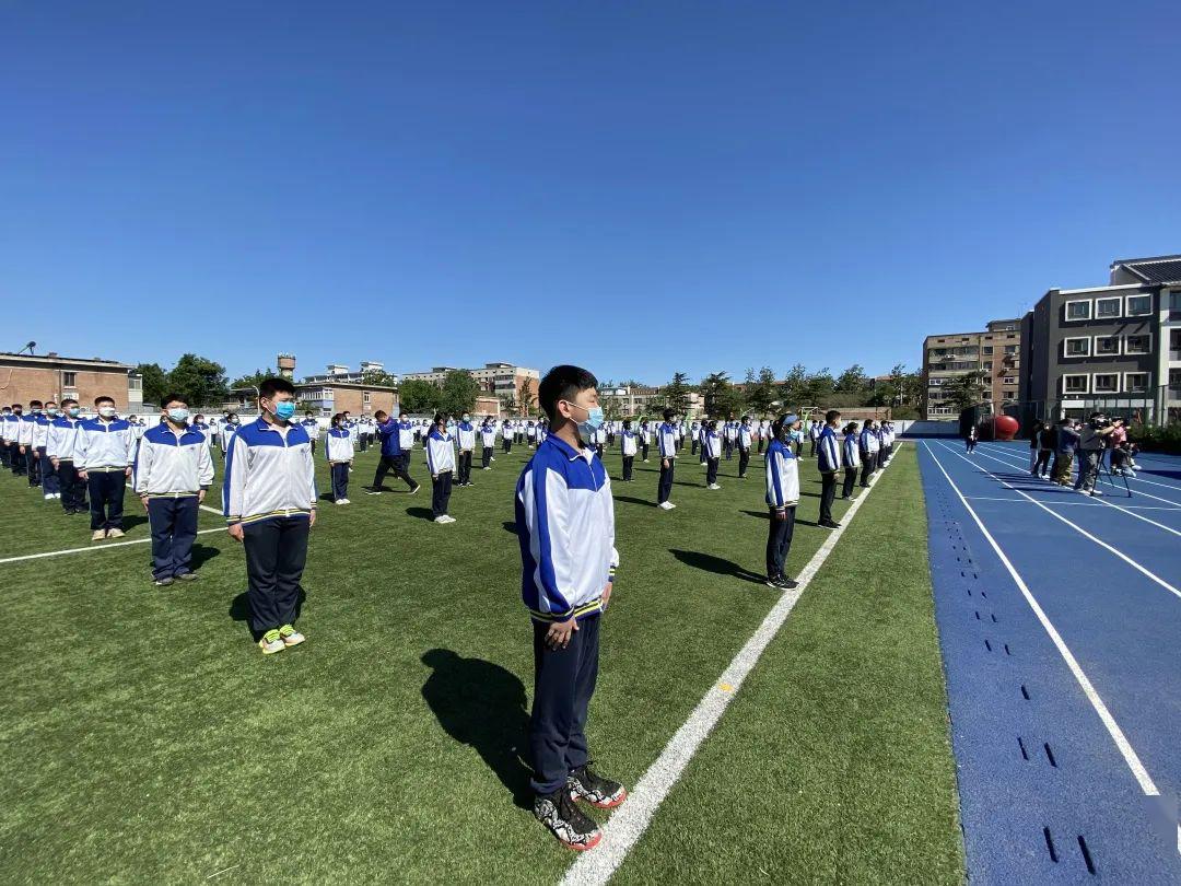 ▲ 丰台二中初三年级的同学们参加返校后第一次升旗仪式。