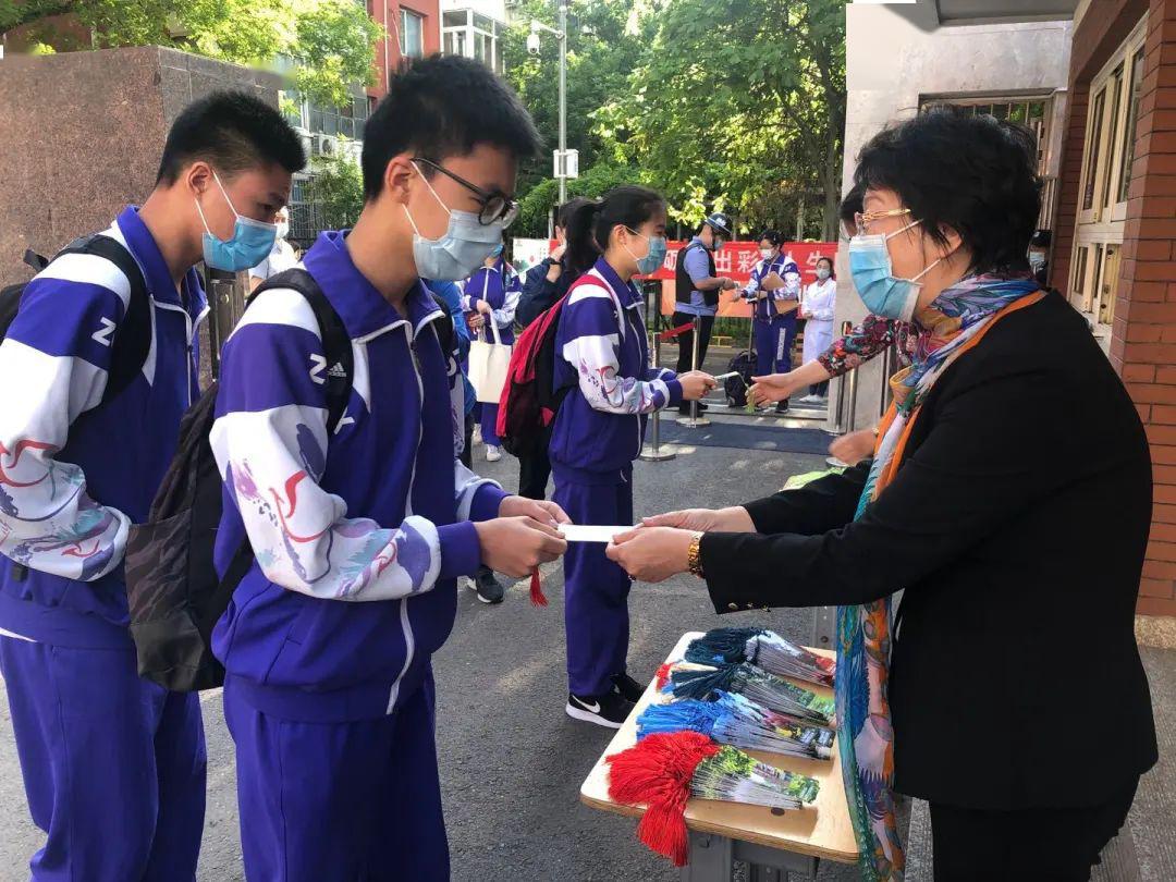 ▲ 中关村中学双榆校区的老师们给返校的学生赠送“时光书签”。