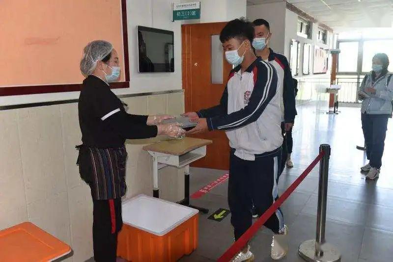 ▲ 结束了上午的学习,通州区永乐店中学的同学们排队取餐。