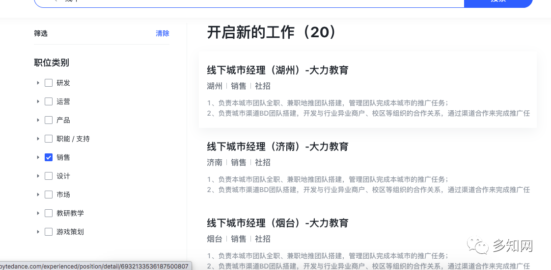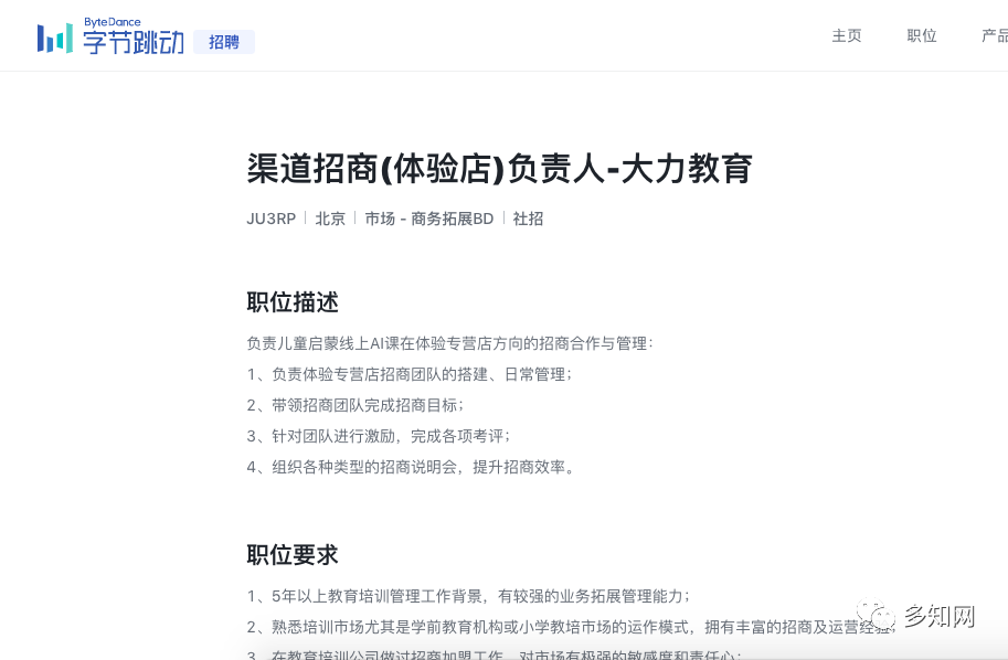 除了线下体验店,大力教育也在搭建线下地推团队,目前正在招聘各城市经理,主要负责本城市团队全职、兼职地推团队搭建,管理团队完成本城市的推广任务。