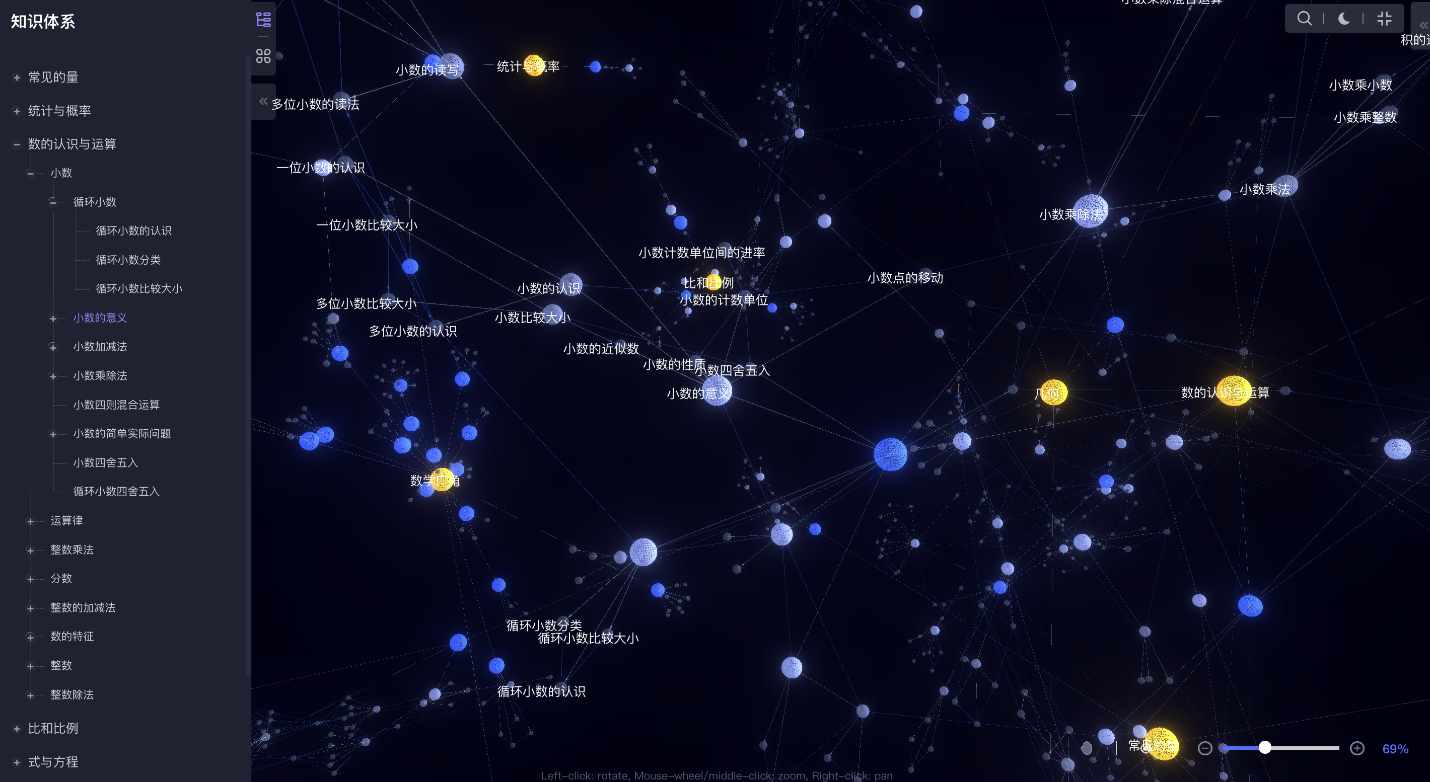 (“小学数学知识点标签体系”能以平面或3D图像进行可视化呈现,配合清晰的分类和标签,用户可以快速查找、定位和了解各种数学知识点,更好地理解数学的概念和原理,提高数学的学习效率和质量。)