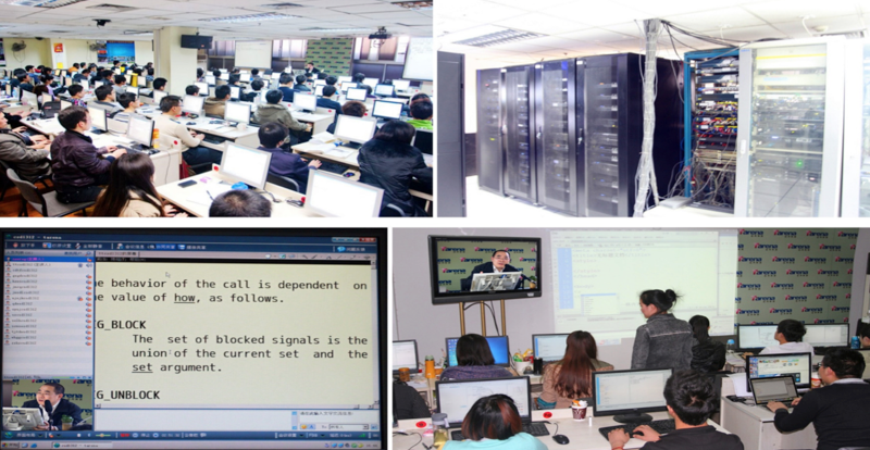 像成人培训的Java方向,我们的现场班都在北京,一个老师讲,全国150家中心同步到几百个教室,最多时有4000个学生同时听一个老师上课。