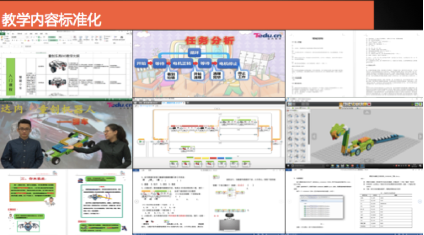 在教学内容的标准化上,达内做的非常全面,花费的成本也很高。刚才我举例,在少儿机器人的课程上,从小学做了520个课时的规划,每一节的课程都包含研发内容和课程大纲。我们上课用的PPT,要求录制视频老师也要有剧本,就跟背台词一样。