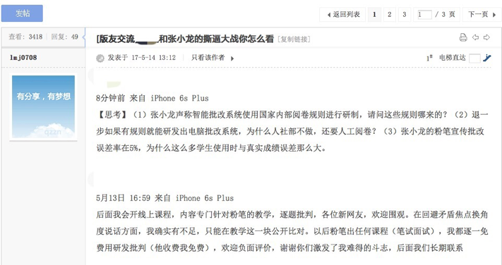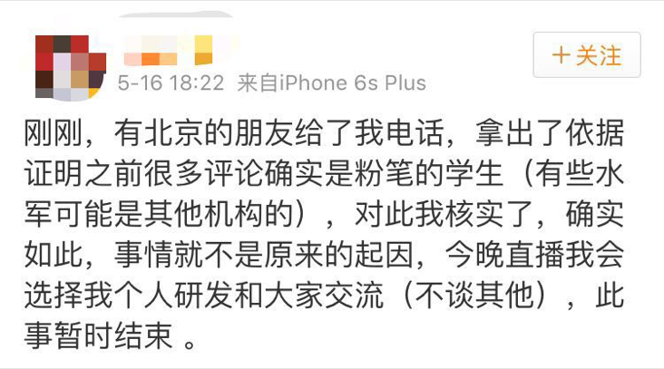 同样的时间段内,一位来自广州的公考教师连发多条微博质疑粉笔智能阅卷系统为虚假宣传,同时删除大量微博粉丝评论并表示均为粉笔雇佣的水军。