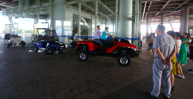 据说水陆两栖车属于私人物品,但运气好的员工偶尔也能借出来在海边沙滩上体验一下“乘风破浪”的感觉,一位网龙的同学从皮卡丘电瓶车上下来后与多知网交流道。