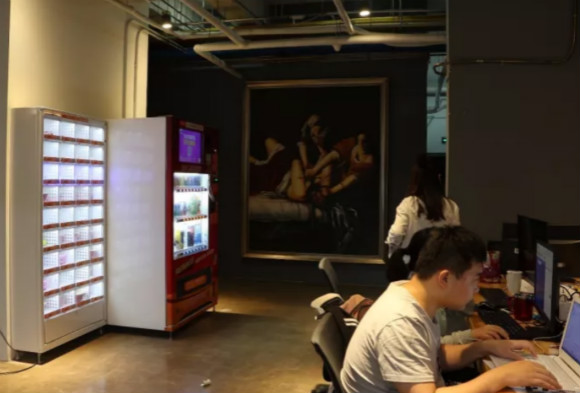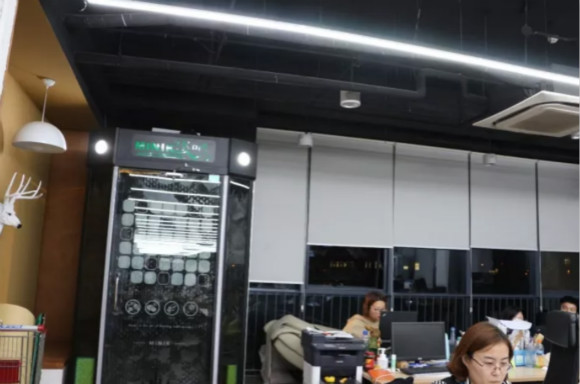 尚德的休息区遍布在公司各处,可以聊天洽谈的会议区、各式自动贩卖机。