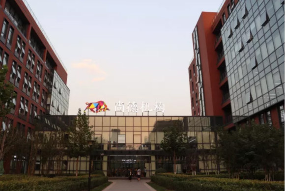 下午6点,到达位于北京东北角的朝来高科技产品园,尚德机构的大楼伫立在显眼的位置。2016年初,尚德机构入驻这个三面环抱的红色建筑,中间由两层玻璃连廊连接了六层北楼和七层南楼。