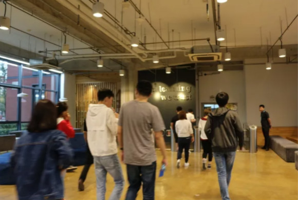 打卡进楼,员工往来奔走。据介绍,尚德机构员工的工作时间是有弹性的,有多种不同作息时间。