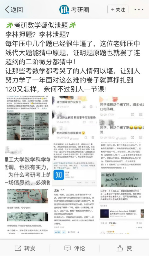 昨日,微博爆出2018考研数学科目疑似出现“泄题”事件。