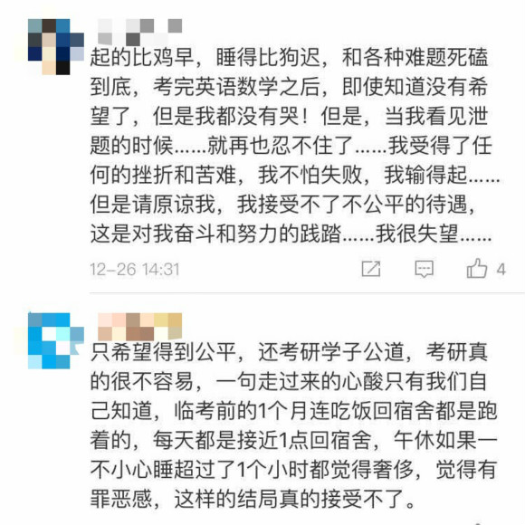 “除事件本身存在疑点,或许事件发酵的根源是考生的哀怨,”某考研培训从业者说道:“今年的考研数学堪称史上最难,有学生称’自己用12个月复习,却进行了一场裸考’,足可见其难度。”