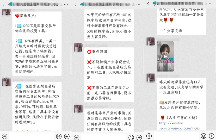 在体验课产品设计上,微淼“小白训练营”设计了“早读+中午防骗小知识+晚上正课+作业”这贯穿一整天的内容,以提高和用户的粘性。此外,为了提高完课率,微淼在作业提交上也制定了一定的规则,如果2次作业没有完成,将会被踢出班级群。