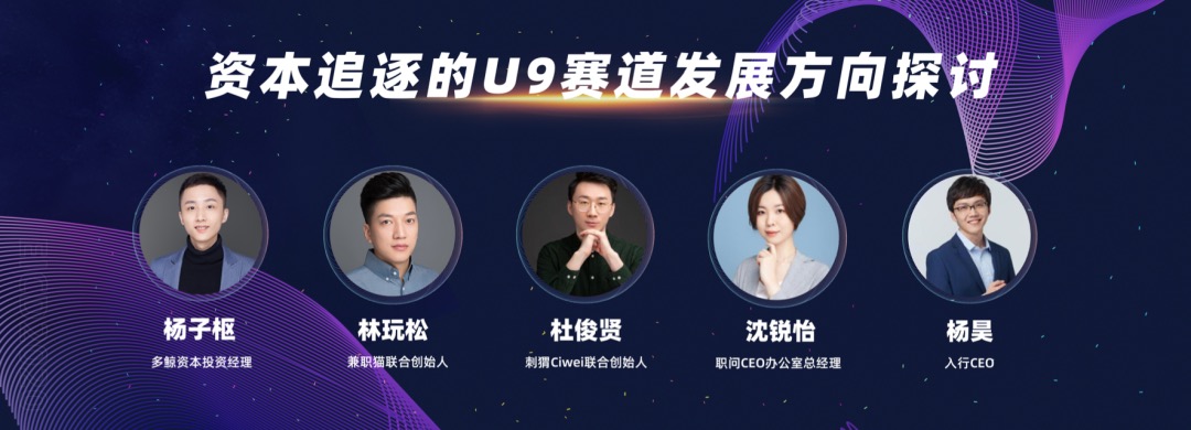 活动现场,兼职猫联合创始人林玩松、刺猬教育联合创始人杜俊贤、入行 CEO 杨昊、职问 CEO 办公室总经理沈锐怡,多鲸资本投资经理杨子枢围绕「多方资本追逐下的 U9 赛道发展」进行了相关讨论。