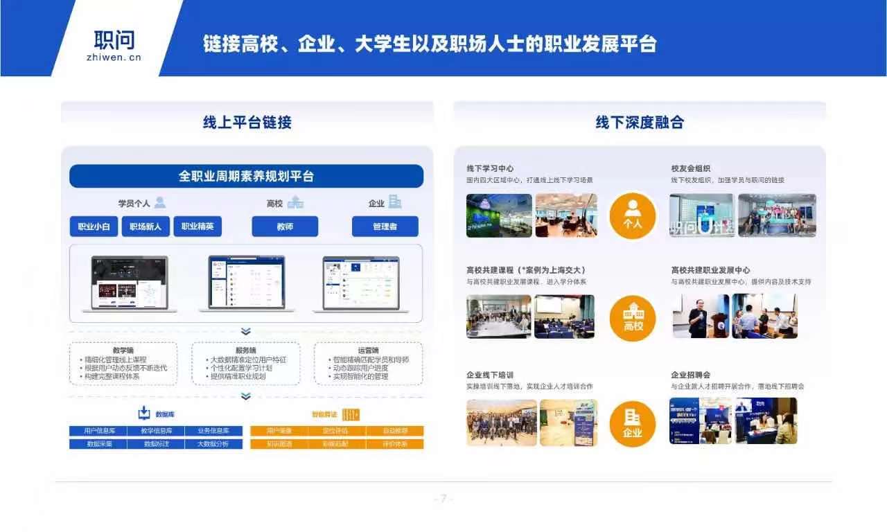 职问方面表示,将加速促成EIU(企业Enterprise、个人Individual和学校University)生态系统落地,形成企业、个人、学校三端良性闭环;优化全职业周期素养规划平台,实现教学、服务、运营的有效联动。