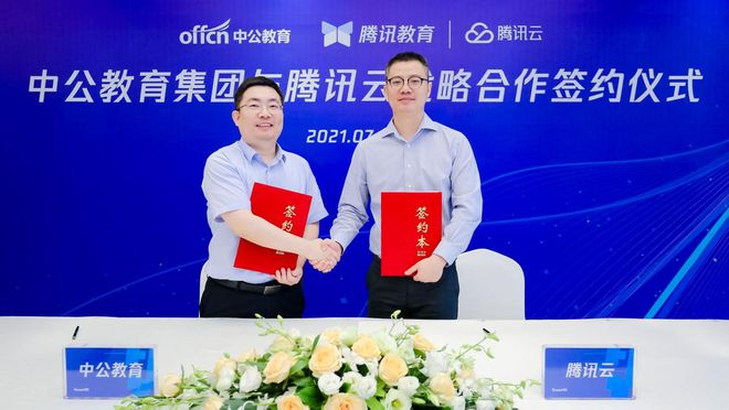 多知网7月24日消息,日前,腾讯教育与中公教育举行了战略合作签约仪式。未来,双方将在产学合作、云计算、内部协同、用户连接等领域展开深度合作,联手探索创新人才培养模式,共育符合产业转型升级需求的复合型、应用型创新人才。