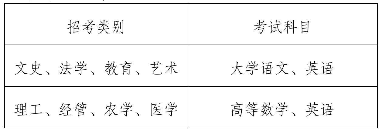 招考类别根据专业对口原则,高职高专和本科专业分为文史、理工、经管、法学、教育、农学、医学、艺术八个招考类别。