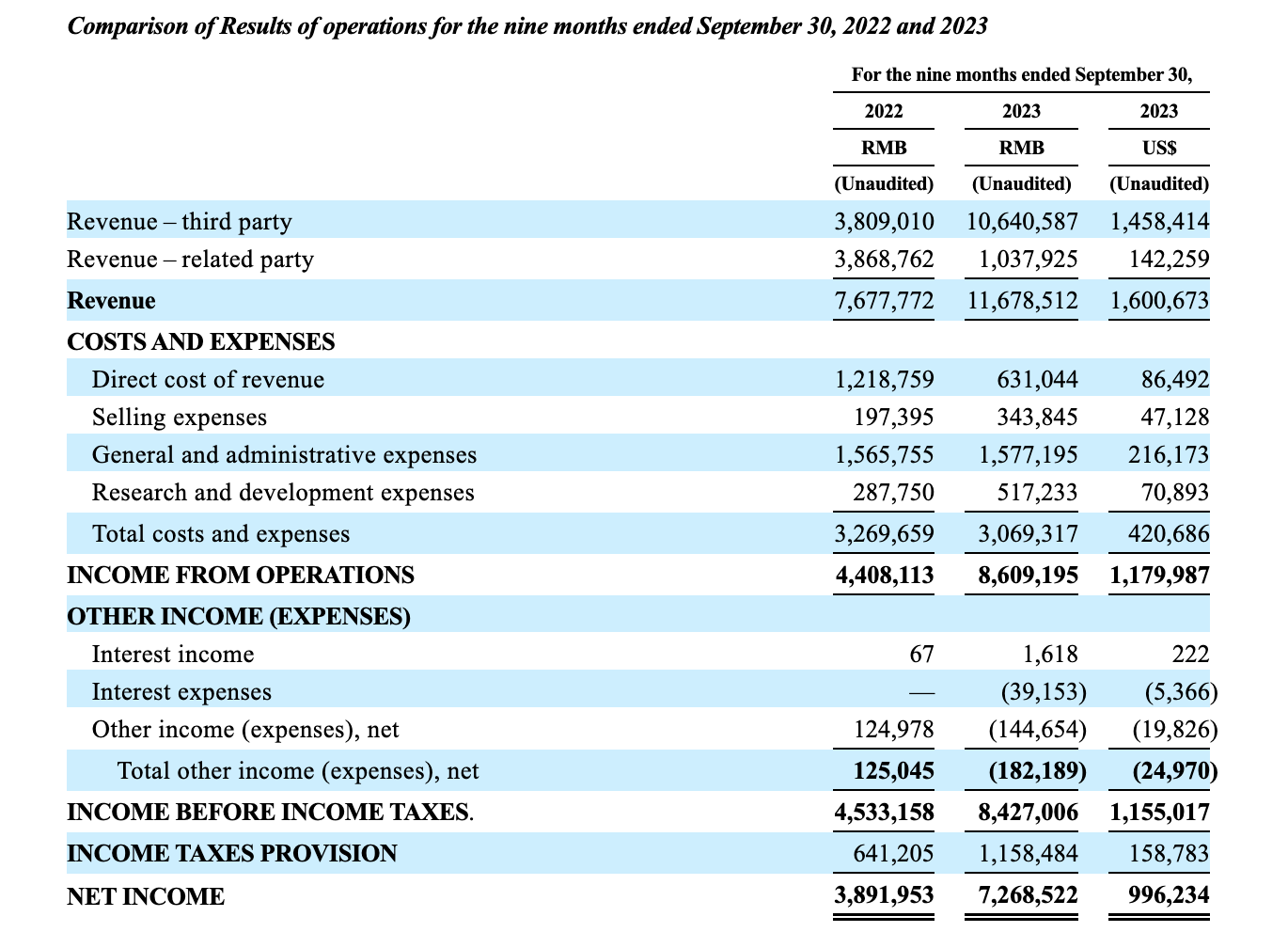 根据招股书,截至2021年12月31日和2022年12月31日止年度以及截至2023年9月30日止九个月,嘉德智高总收入分别约为502.6万元、1023.9万元和1167.9万元。相应年份和期间,净利润约为39.5万元、536万元和726.9万元。
