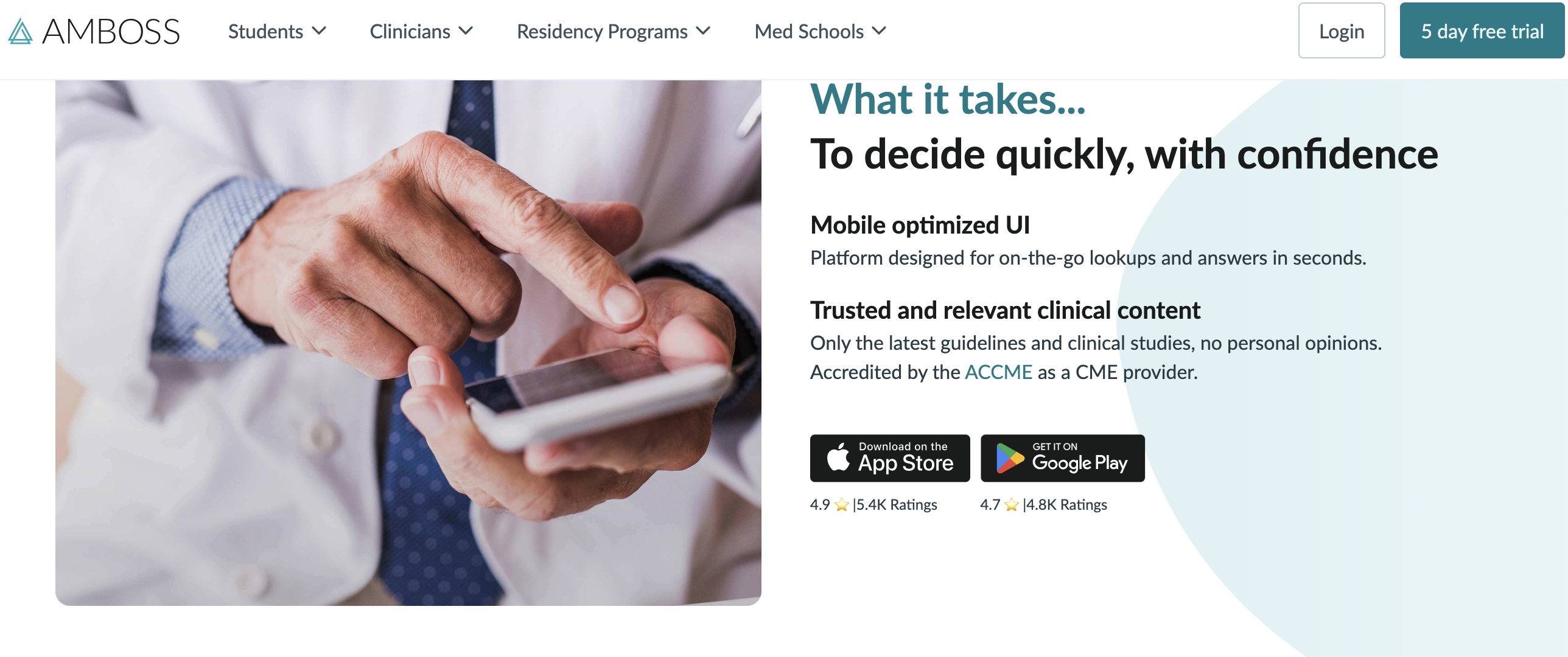 AMBOSS 根据最新指南提供精确且可操作的诊断和治疗建议,是日常临床实践的数字副驾驶,有助于节省时间并避免治疗错误。