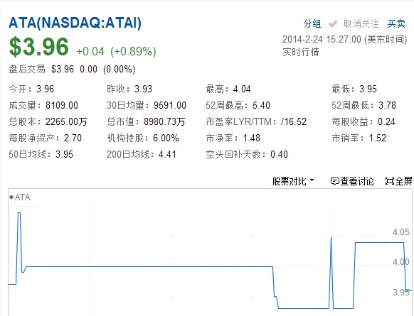 ATA预计,截止至3月31日的2014财年第四财季营收为4400-5400万元。(多知网 carey)