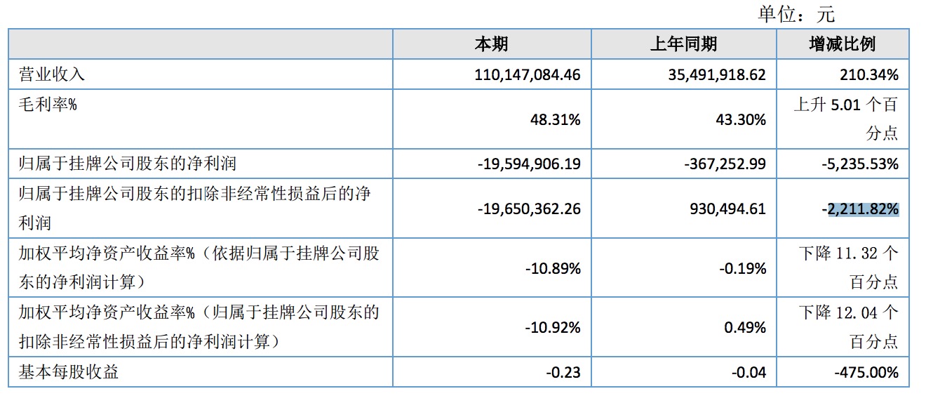 如表所示,文都教育营业收入1.1 亿元,同比增长 210.34%;归属于母公司所有者的净亏损1959.49 万元,同比下降 5235.53%;营业总成本为 1.32亿元,同比增长 266.12%。