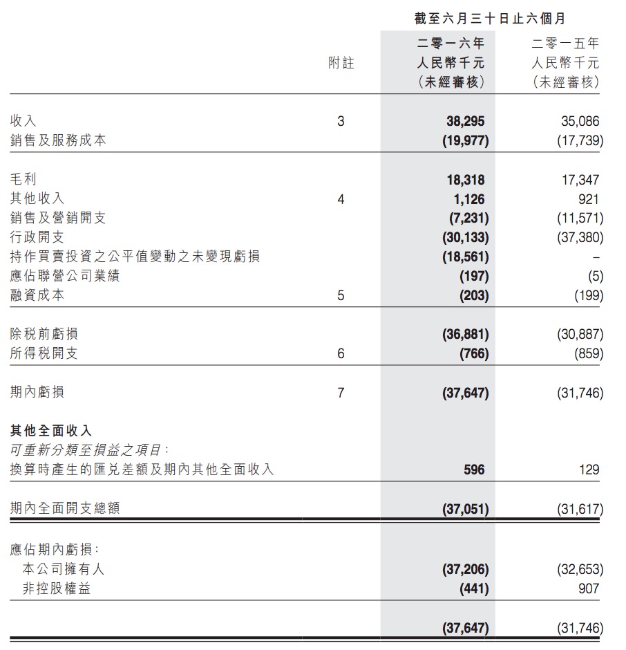 销售及服务成本约为1997.7万元,较去年同期增加约12.6%;毛利率轻微下跌至约47.8%。销售及服务成本增加主要由于摄影成本及研发开支上涨所致。