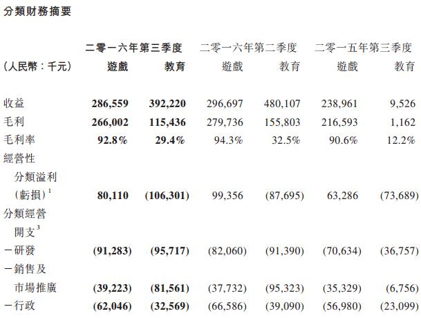 网龙2016第三季度教育业务亏损1.06亿元,同比扩大