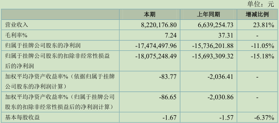 2016财年归属于挂牌公司股东的净利润为-1747.45万元,去年同期为-1573.62万元,同比增长-11.05%;