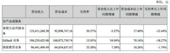 家校互动升级业务实现营收1.33亿元,同比下降3.57%;继续教育业务实现营收9644.15万元,同比增长7.38%;EdSaaS业务实现营收1.96亿元,同比增长34.04%。