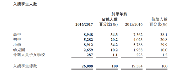 报告期内,枫叶教育2016/2017学年入读学生人数为26088人,相比较2015/2016学年增加了6754人,增长34.9%,其中13.13%的增长来自于新开学校。
