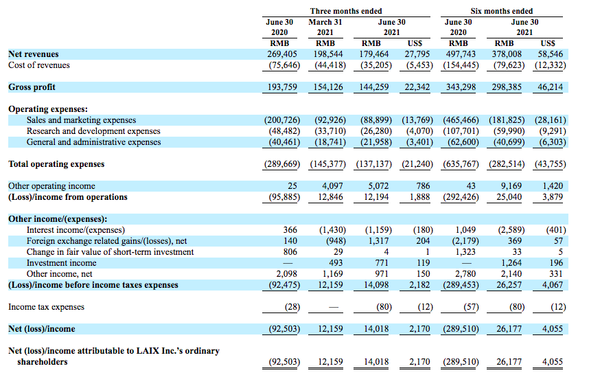 多知网8月28日消息,流利说(NYSE: LAIX )日前发布截至2021年6月30日止的2021财年第二季度未经审计的财务报告。报告期内,流利说营收1.8亿元,同比减少33.4%;净利润1400万元,去年同期净亏损9250万元,同比扭亏为盈。