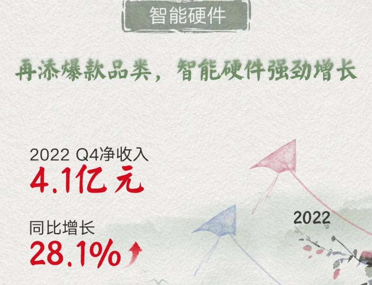 智能硬件净收入4.1亿元(5900万美元),同比增长28.1%;