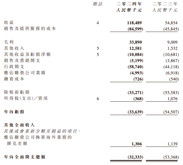 年内亏损3363.9万元,上年同期为亏损5450.7万元,同比收窄约38.3%。该减少主要由于收益及毛利增加。