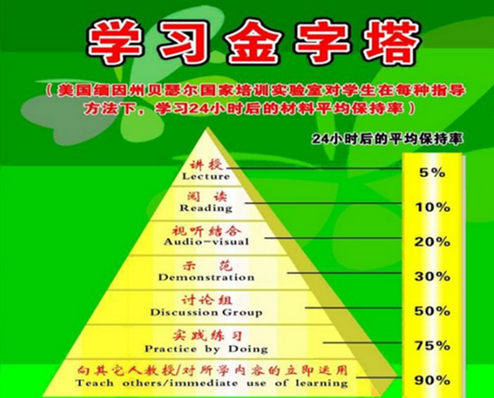 用“我讲你听”的教学方式,学习内容平均留存率仅为5%,被动学习的学习内容平均留存率最高不超过30%;但通过讨论、交流获得的知识和经验,学习内容平均留存率可以达到50%,如果学生能够将自己学到的东西讲给他人,学习内容平均留存率竟可达90%。