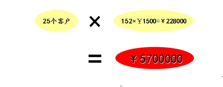 一个家庭和它能够有效影响的24个家庭是25个客户(全部为三口之家),而一个客户的补习周期价值为22.8万元。用二年级小学生学到的最简单的乘法,显然可以得到最终的结果:570万。