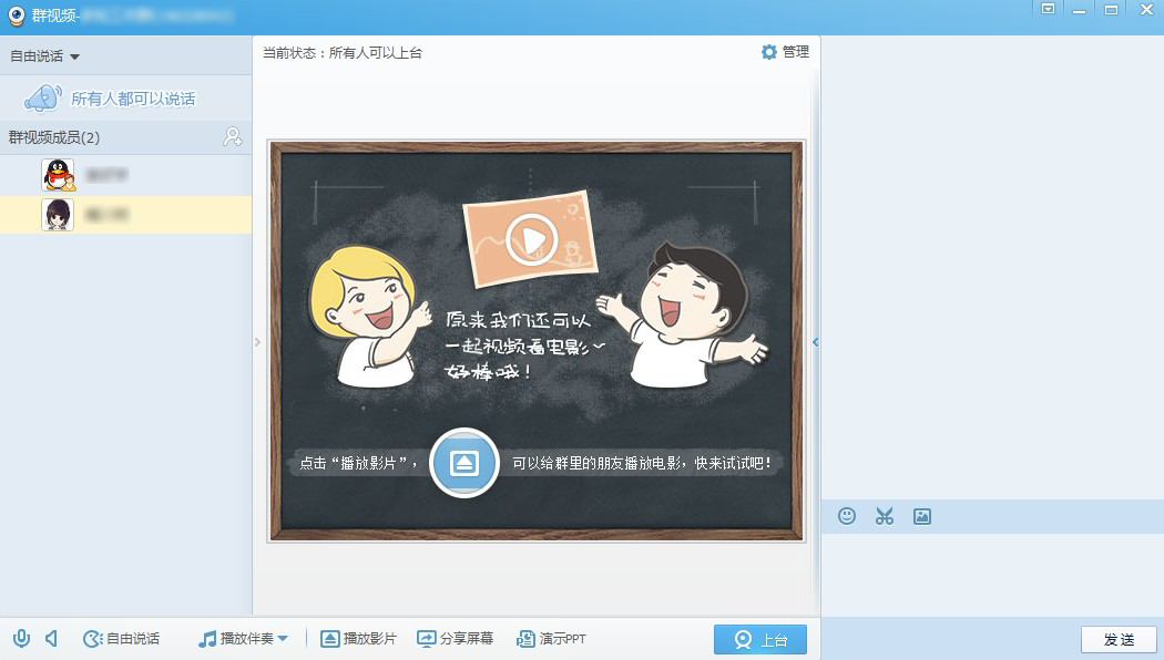 1:首先在SP5版本中打开任一QQ群,点击右边栏“群视频”功能。