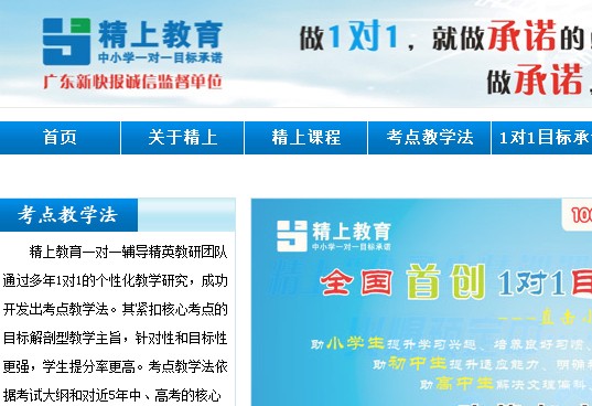 精上教育主要做1对1的个性化辅导教学,主要集中在广东地区,有番禺、天河、海珠、越秀以及佛山等多个分点,采用 “4个1”辅导模式,针对一个学生,会配有学习规划师、专职班主任等。
