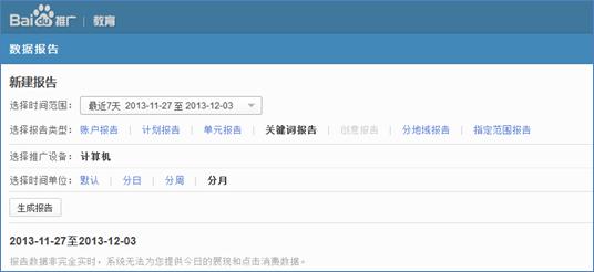 数据统计功能不稳定,查询关键词报告常提示数据量过大,无法下载报告。