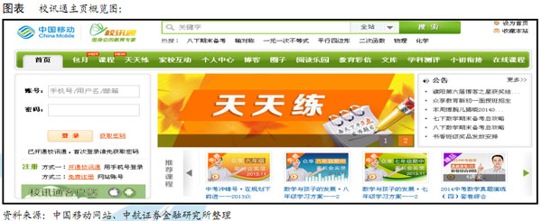 校讯通产品是中国移动面向中小学校和家长量身定制的一项便捷信息化服务,是专为实现家庭与学校快捷、实时沟通的教育网络平台。采取的是学生免费使用而家长使用按包月付费(2-12元,各省市资费和功能不同有所差异),同时家长向平台发送信息额外收取信息费的模式。按照中国移动的统计数据现有家长注册人数超过1.3亿的数量来看,该业务年规模达到60亿几乎无悬念。