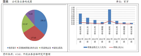 拓维信息是一家集教育服务、手游、动漫、信息系统集成等多业务于一身的高新技术企业。在智能手机产生后的移动互联网浪潮中,移动增值行业(IVR、彩铃彩信、短信互动等)逐渐步入成熟期,公司与其他SP厂商一样开启了移动互联网的转型之路。目前公司战略定位主要聚焦于两大方向:1、移动教育互联网产品:包含教育信息化、互联网教育、线下创新学习中心三个模块;2、手游:包含代理发行和内容提供。