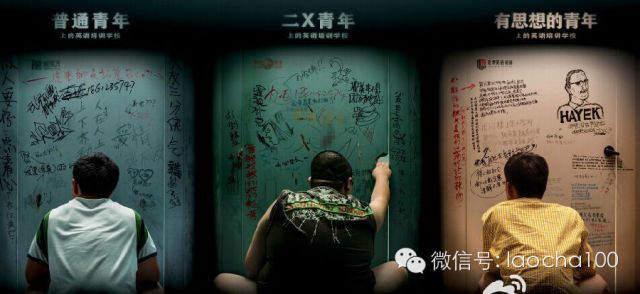 这个广告其实挺适用于现在的留学中介行业的。普通青年选择“**列、*途、*德,二X青年选择**不大不小的机构,有思想的青年选择留学小中介!