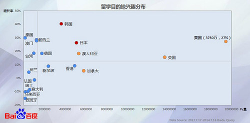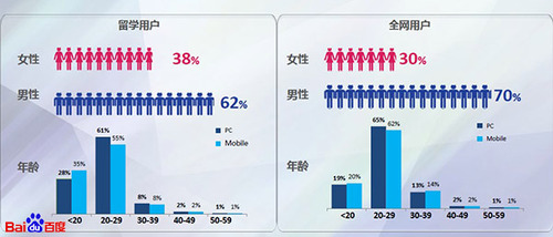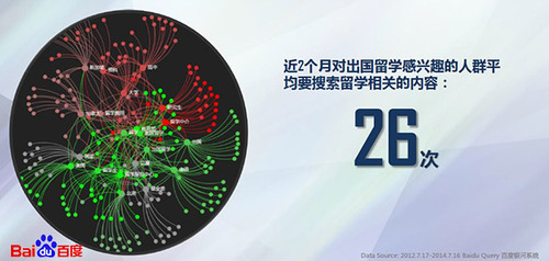 百度目前一年覆盖留学兴趣人群近500万,产生约3.6亿次的留学相关检索。