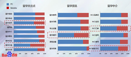 另外,留学资讯、留学价值、留学疑问类检索及各种口碑类的检索在无线端更加显著。