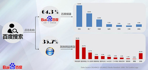 搜索之后,超过六成用户留在了百度平台内,百度百科、百度知道、百度贴吧、百度教育、百度文库。对于企业来说,在这些频道的布局与品牌曝光,将大大增加品牌与用户的接触面,强化网民的品牌认知。