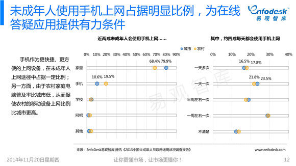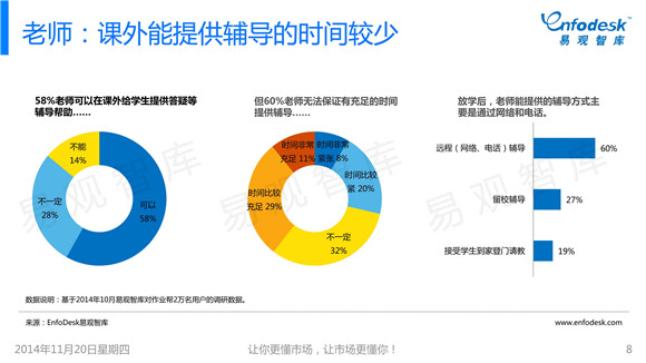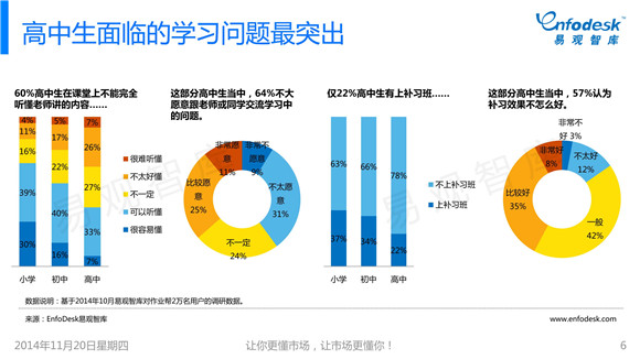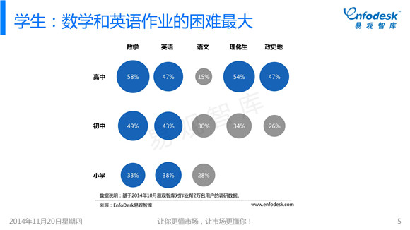 多知网11月26日消息,近日,互联网咨询公司易观国际近日发布了《中国在线答疑应用教育价值分析报告2014》。报告从目前国内教育行业的现状、在线答疑产品满足的用户需求方面、以及未来在线答疑工具的延伸发展的角度进行了阐述。以下为报告全文: