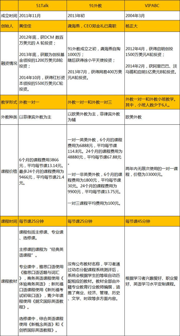 51Talk、91外教、VIPABC三家公司模式对比(多知网制图)