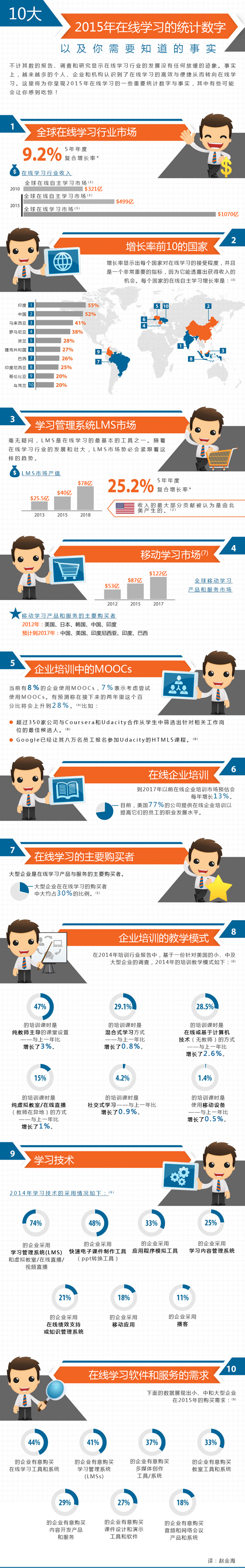 多知网1月29日消息,越来越多的报告、调查、研究显示在线学习行业的发展没有任何放缓的迹象。事实上,越来越多的个人、企业、认识到了在线学习的高校与便捷从而转向在线学习。这里将为你呈现2015年在线学习的一些重要统计数字,其中有些可能会让你吃惊。