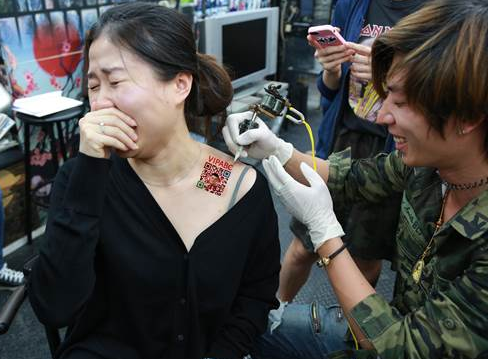 VIPABC宣布,即日起只要员工将公司二维码纹上身,无论纹在任何部位,都将终身聘用、永不辞退,并且保证随物价波动每年还可加薪3%至5%。这一终身聘用条例将适用于所有员工。员工获知后,惊喜万分,更有员工立刻前往纹身。