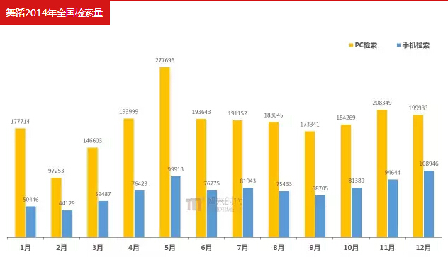 艺术类科目中的舞蹈,检索量在近两年都较高,排在重点学科语数外后的第四名。舞蹈检索量与其他文化课在2014年的变化趋势有很大不同,除2月外的全年检索量一直保持在较高水平,年检索量的最大值出现在5月。艺术类课程作为学生的课外兴趣课程,其学习是一个长期的过程,全年的需求量都较大。而高考艺考集中在12月和1月,这对秋季学期的高检索量有一定影响。