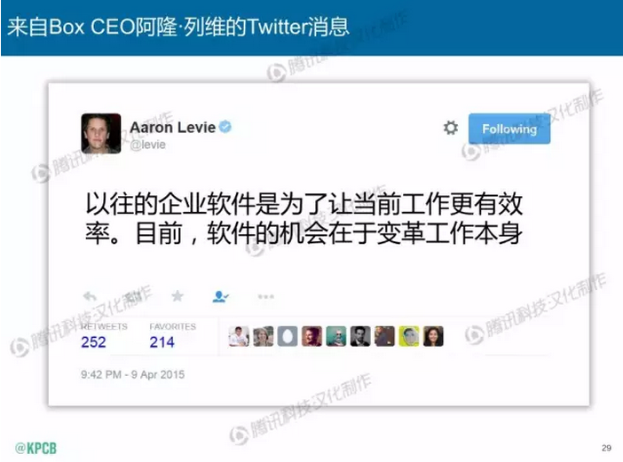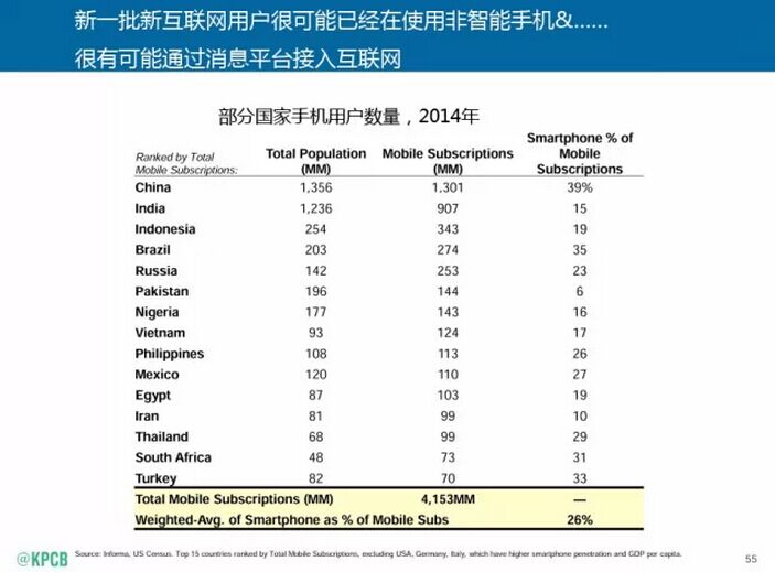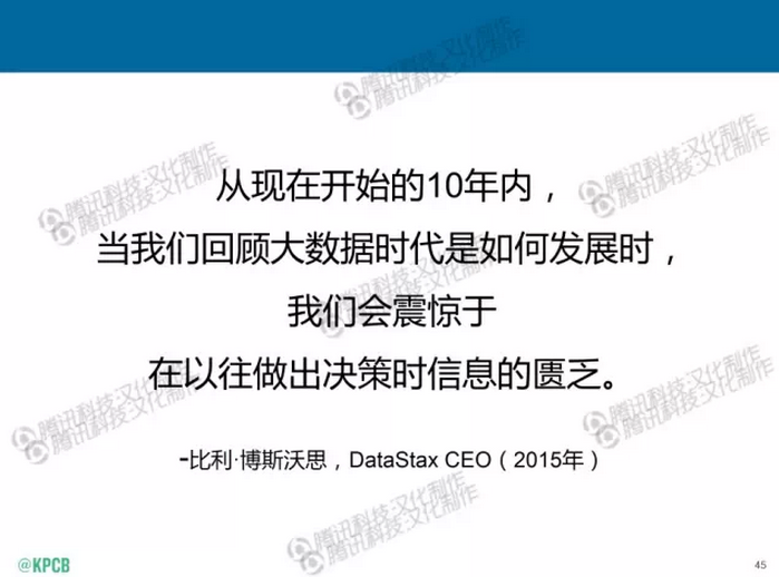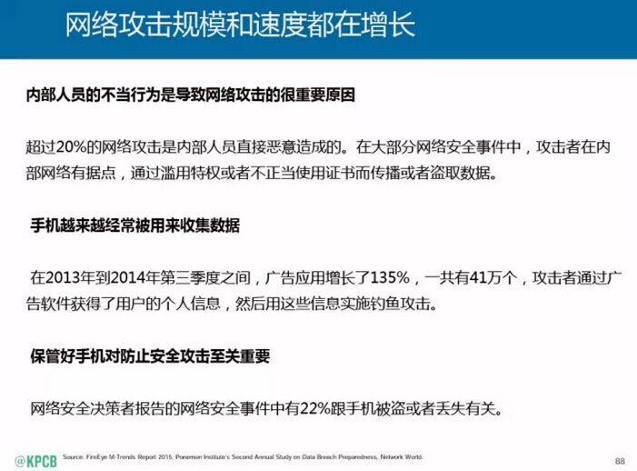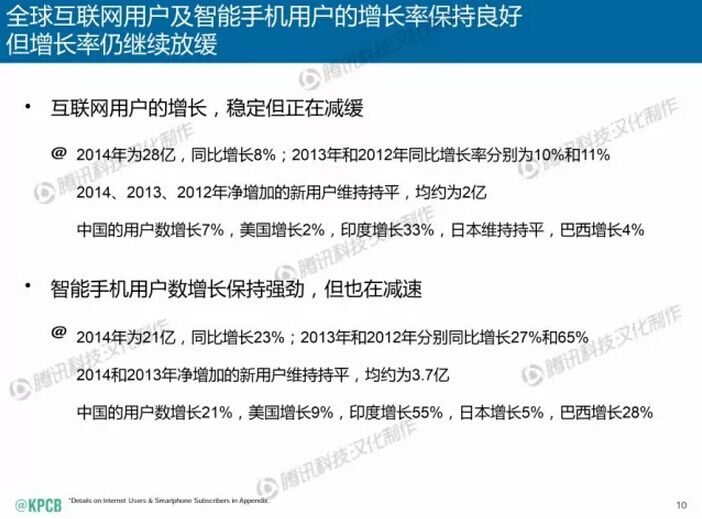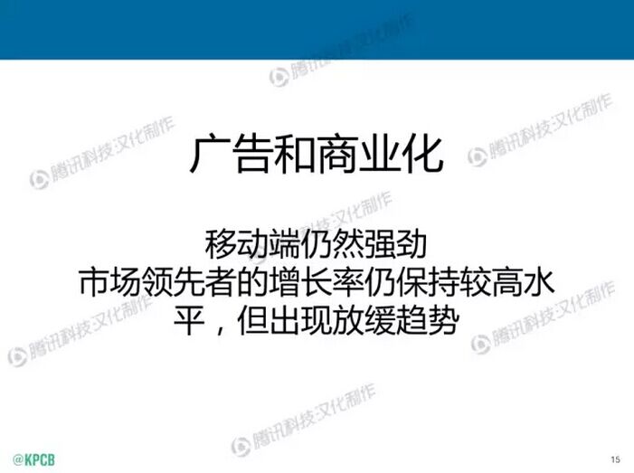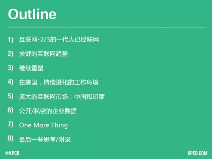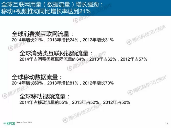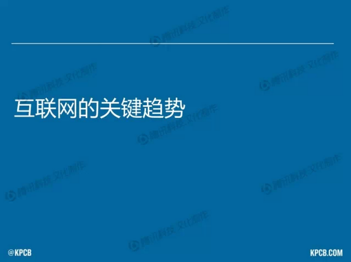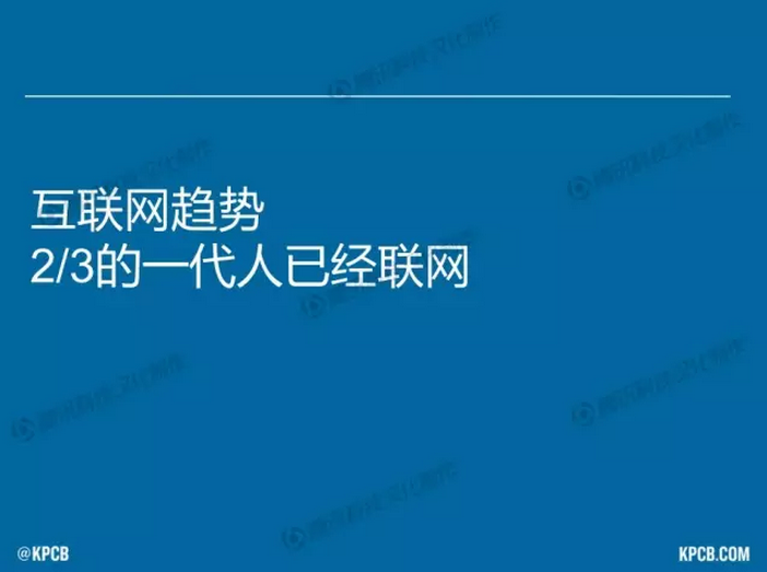 编者按:每年此时,凯鹏华盈(KPCB)合伙人、享有“互联网女皇”美誉的玛丽·米克尔(Mary Meeker)都会公布一份互联网趋势报告。这份报告中包含了她对互联网发展趋势的完整剖析,覆盖移动设备到互联网使用的方方面面。
