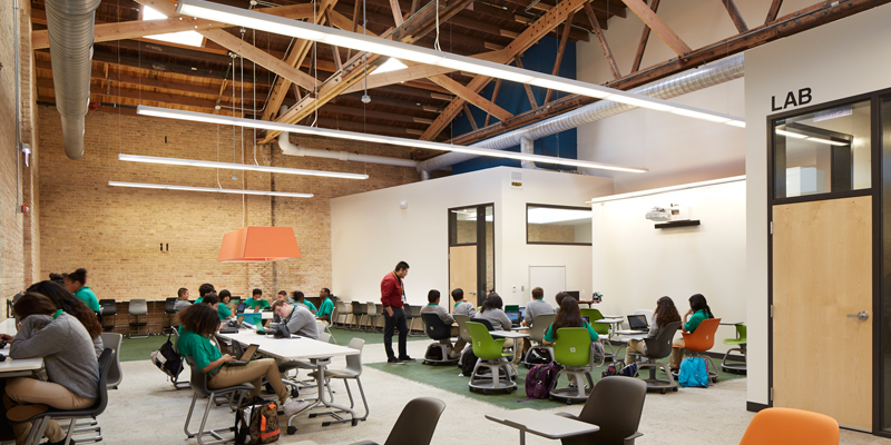 霍恩:看来,大家在芝加哥的公立特许学校做了非常多的尝试。你能解释设计背后的思考?